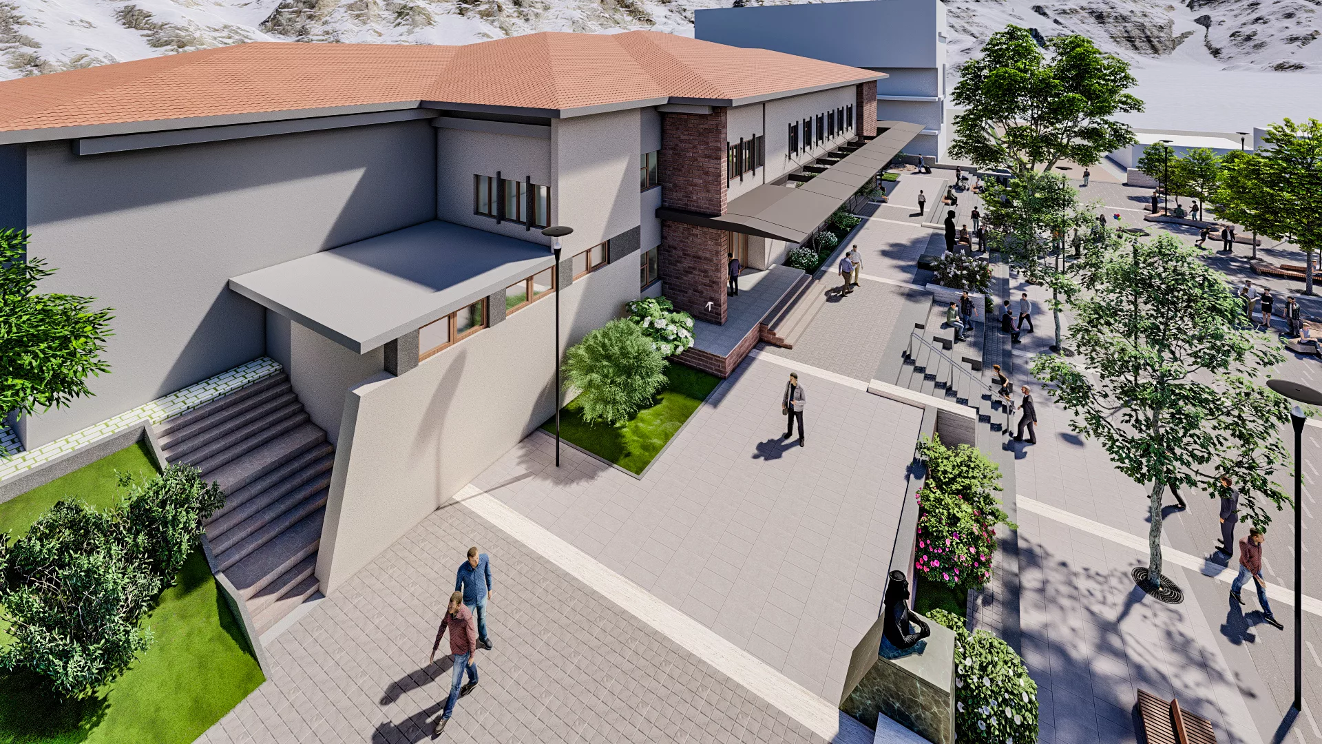 Description: This project aims to revitalize the main square of the city, laying in front of an important building of the past which was purposed to offer the people of Bulqiza what it lacks now. The Cultural Center today is empty and only houses a couple of bars and cafe’s very far from its glory. The redesign of the square touches and integrates the existing building with the area in front of it currently occupied by cars, and turning it into a lively avenue, transforming into an exciting activity and a landmark for the city. To enrich the program, a small mining museum is proposed, for the bypassers to catch a glimpse of the work and hard conditions that miners undergo in their daily journey to the heart of the mountain.