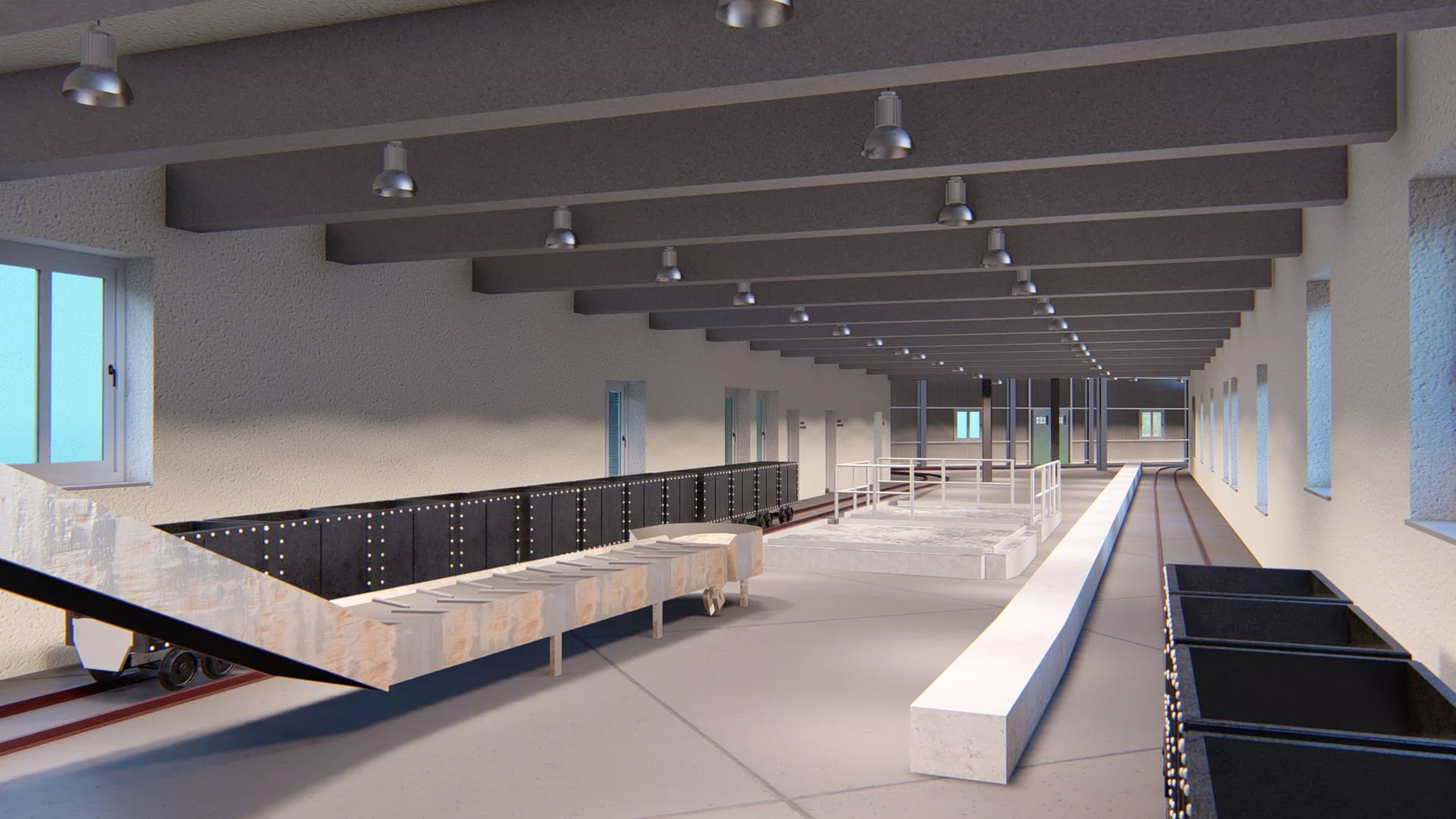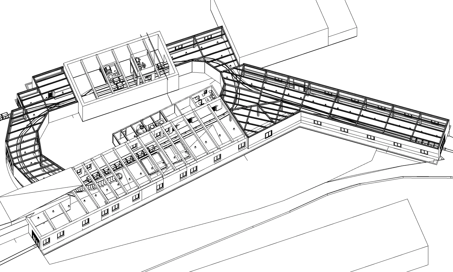 Description: The mining facilities have been an important part of the city's and country's economy throughout the years, but little has been done to keep up with the advancements in technology as well as little to no maintainment has been done on the building itself. Parts of the building are falling, rendering the working conditions extremely dangerous, added to the danger native to the process of mining. The reconstruction proposes a new structure to cover the area as well as improved infrastructure and functional spaces for the heavy work and for the miners.