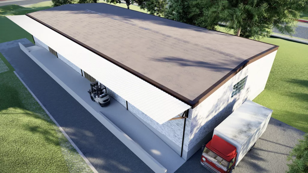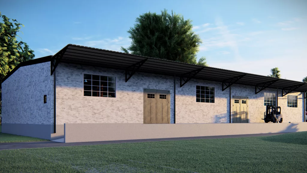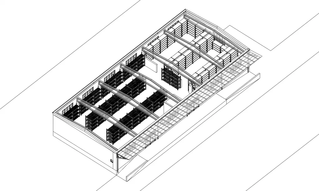 Description: The warehouse is not in functioning condition and needs extensive repairs both in the interior and exterior. The bearing capacity of the structure is in a good condition, but the partitions are heavily damaged and new equipment and space organization is necessary. The building has been added some rooms by the former owner, which are no longer needed and hinder the proper functioning of the building. The entering ramps are rebuilt to support the weight of the machine traffic on them for extended periods of time.