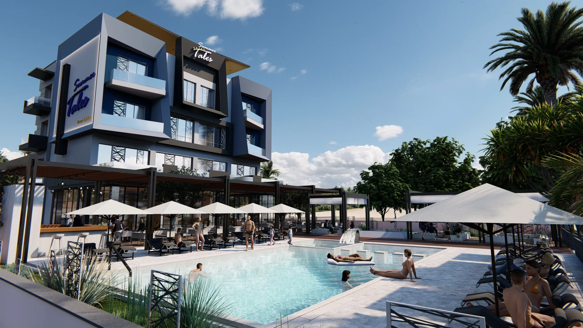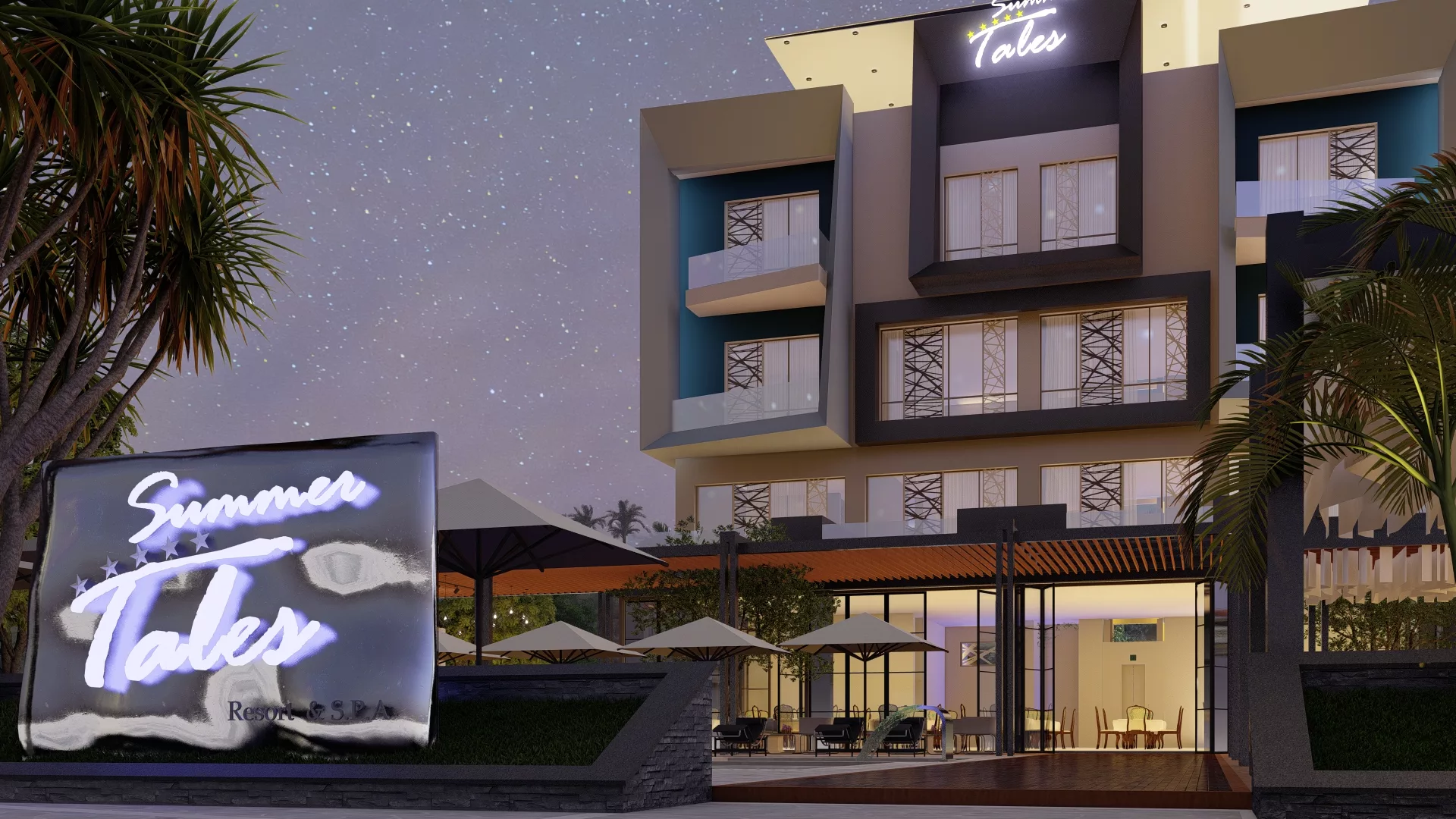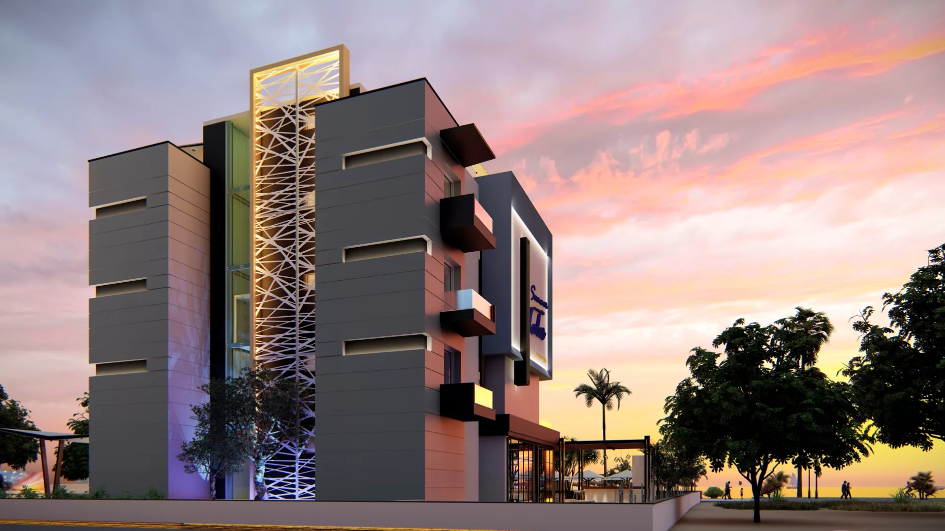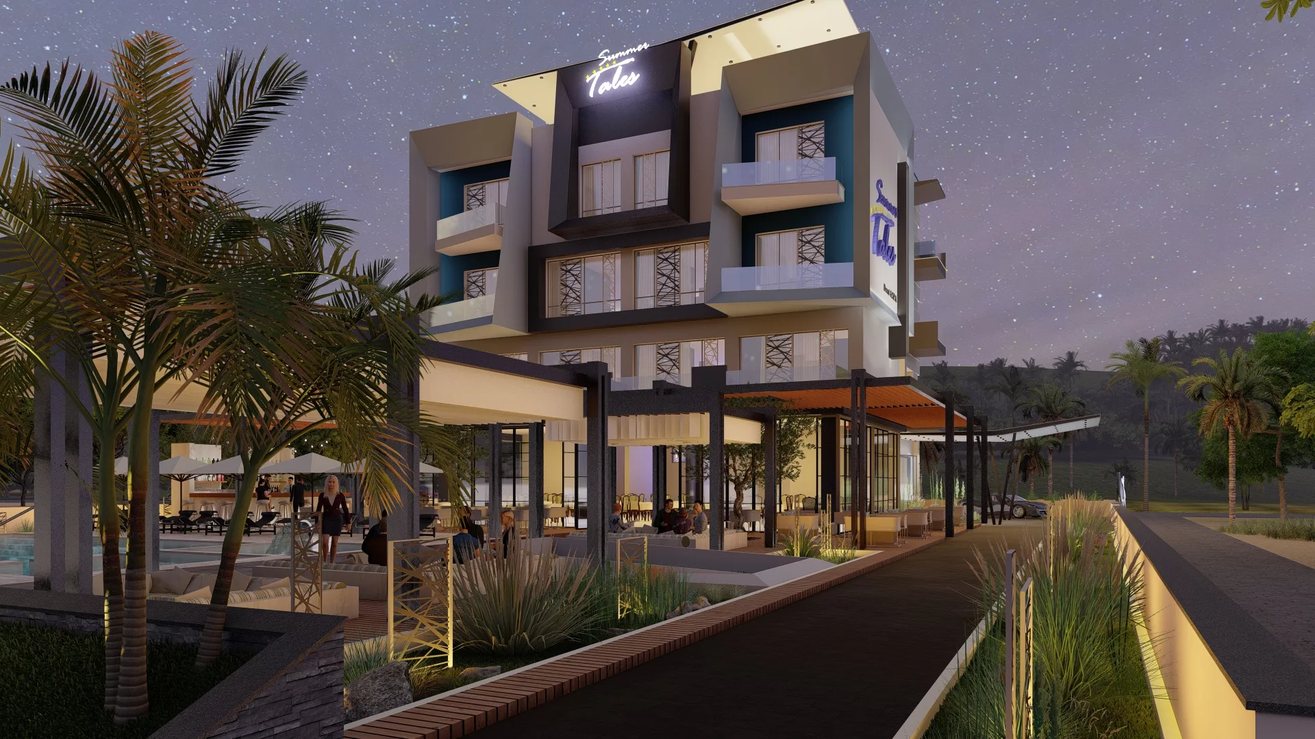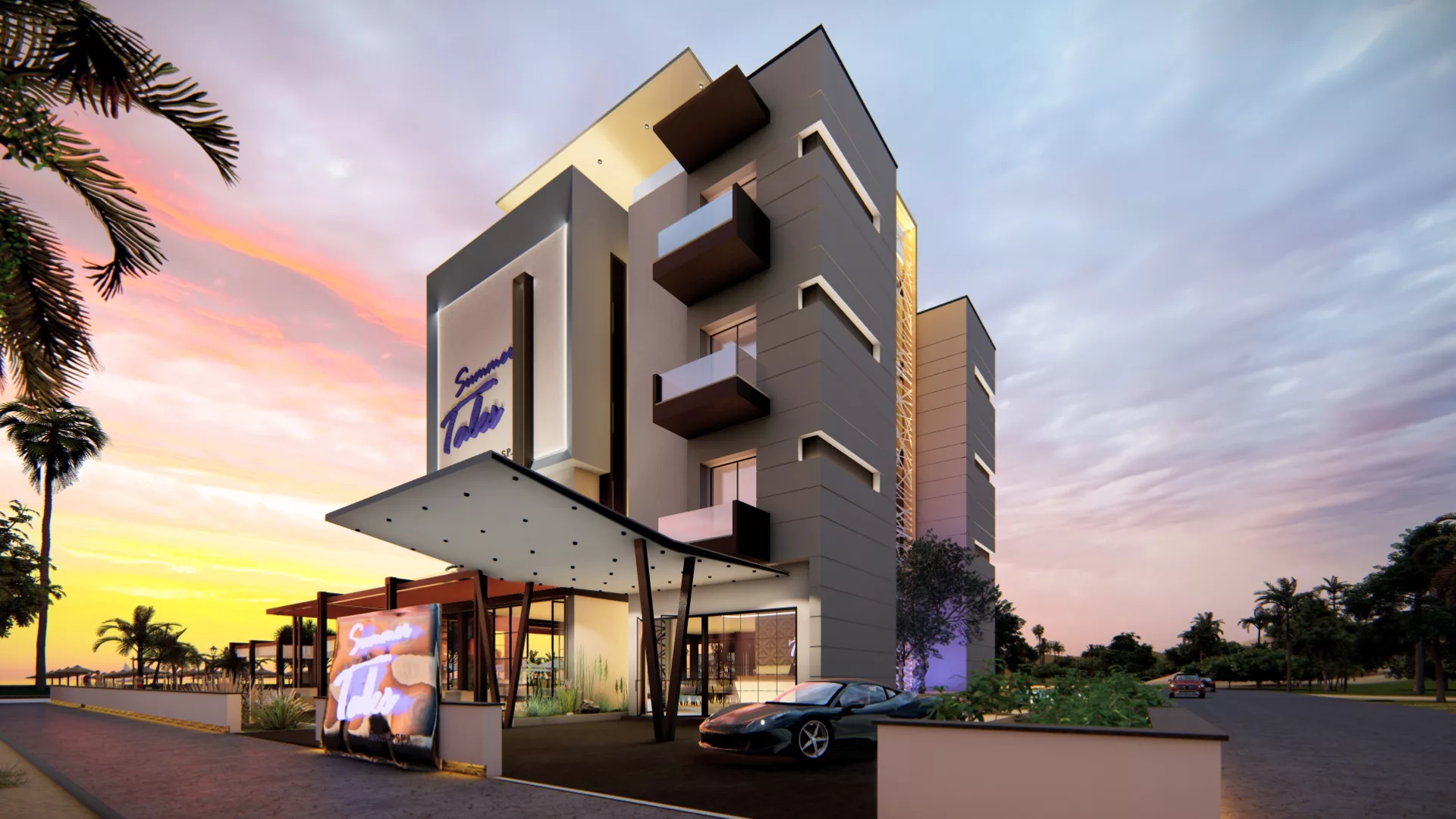 Description: Beachside hotel, on the shores of Adriatic Sea, in the Tale area in Lezha, Albania. The design embraces summer and sea colors and stands out with the playful facade boasting modern shapes.