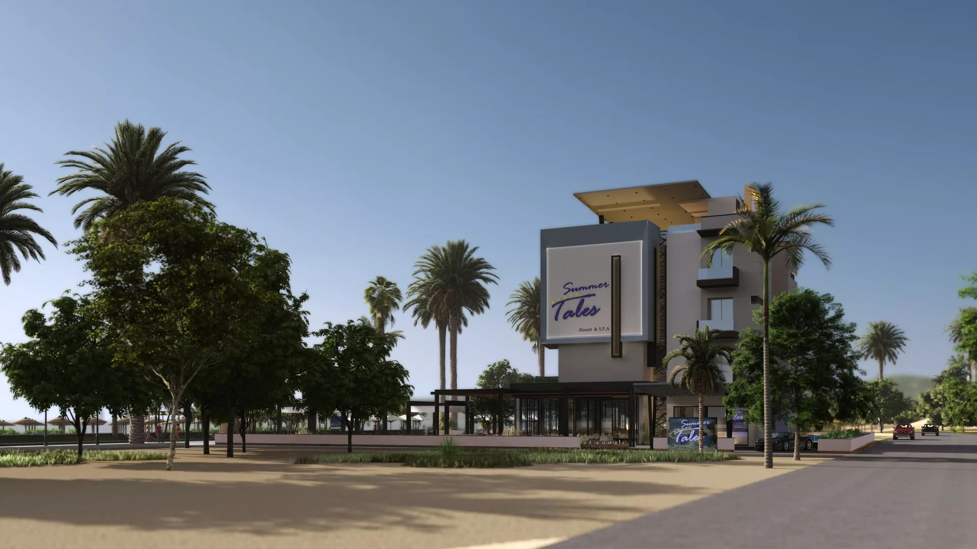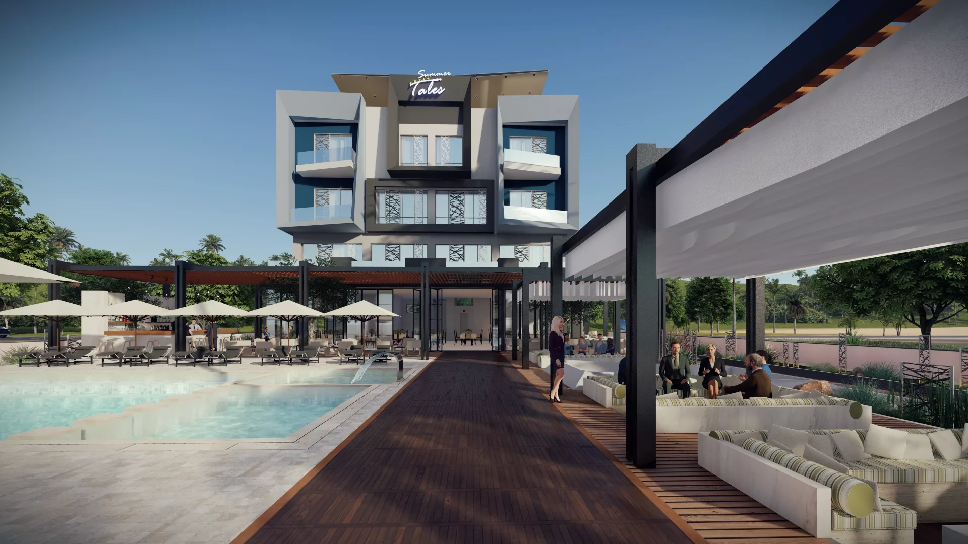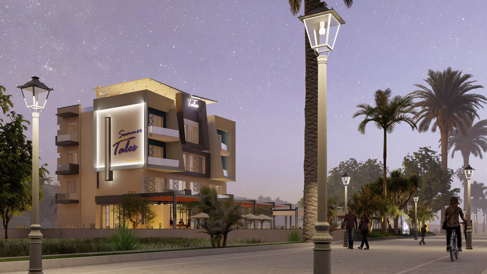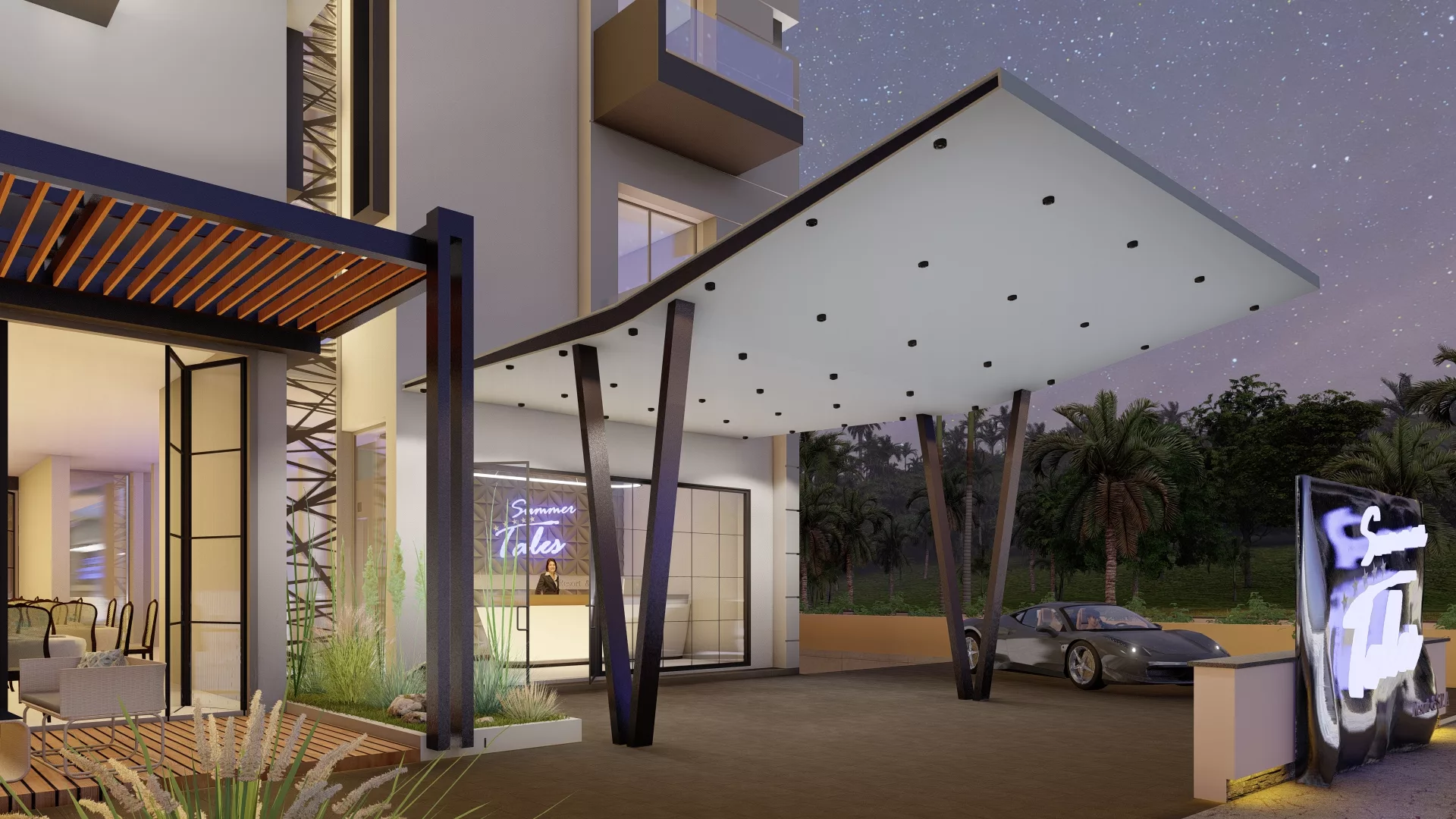 Description: Beachside hotel, on the shores of Adriatic Sea, in the Tale area in Lezha, Albania. The design embraces summer and sea colors and stands out with the playful facade boasting modern shapes.