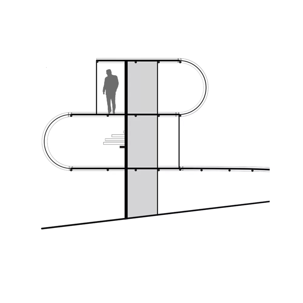 The task concentrates on a minimal living space which provides all the essential needs and spaces for a person to live. It provides one bedroom, a bathroom and a shower, a living room and one additional watching/working/sitting area. The unit is elevated and it is accessible through a ramp. It provides a space of 30sqm . The design is organised around a central core, which serves as the supporting structure for the entire unit as well as the service core. The design enables a 360 degree view of the surroundings.